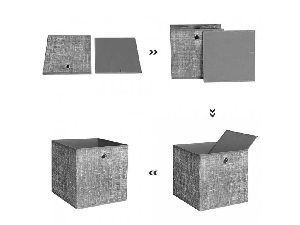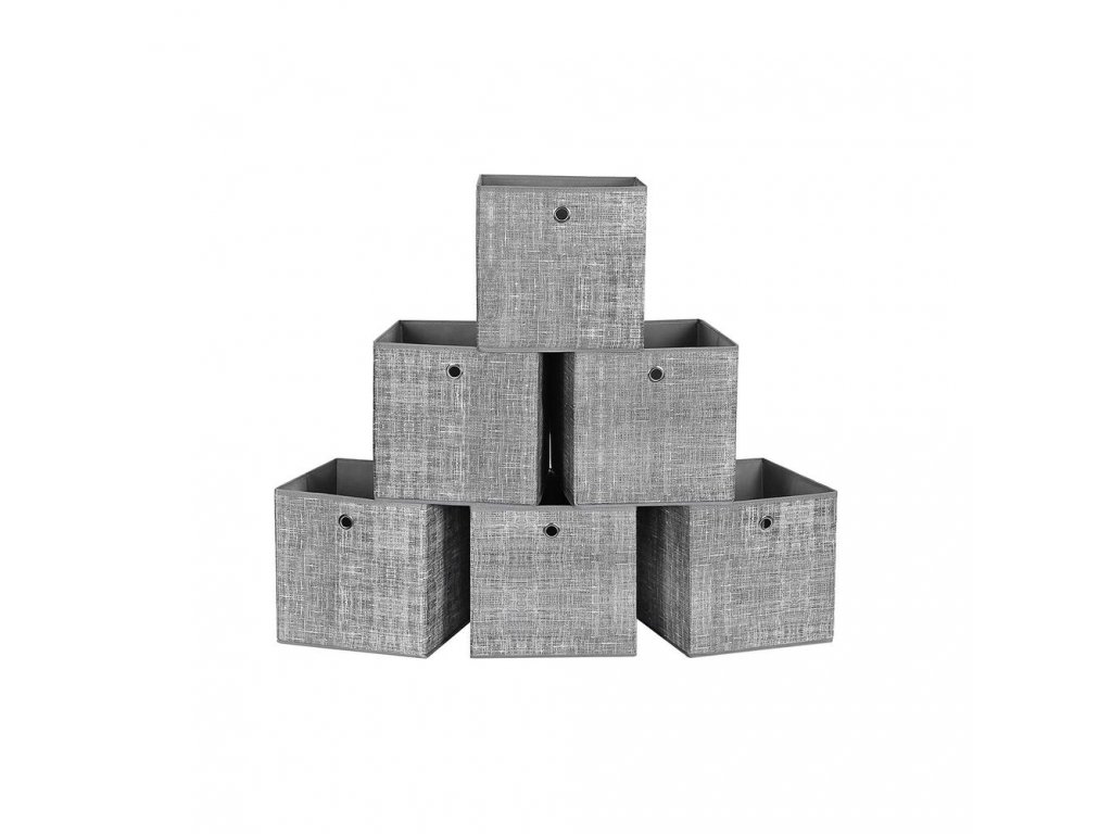 Skládací úložné boxy v melírově šedé barvě se dodávají v šesti kusech, které jsou schopny nahradit středně velkou komodu.